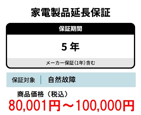 ワランティテクノロジー 5年間延長保証(自然故障対象)商品価格80,001円~100,000円