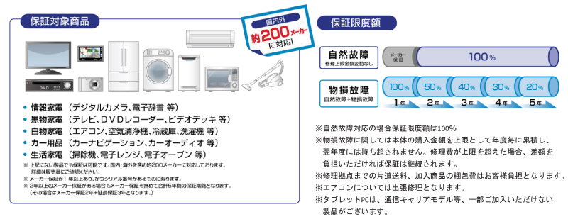ワランティテクノロジー 5年間延長保証(自然故障対象)商品価格140,001円~160,000円