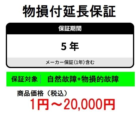 ワランティテクノロジー 5年間延長保証(自然故障+物損的故障対象)商品価格1円~20,000円