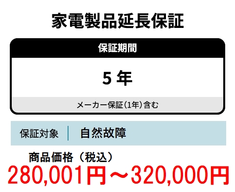 ワランティテクノロジー 5年間延長保証(自然故障対象)商品価格280,001円~320,000円
