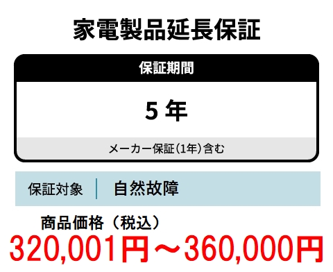 ワランティテクノロジー 5年間延長保証(自然故障対象)商品価格320,001円~360,000円