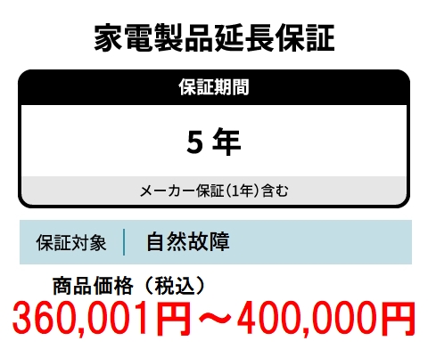ワランティテクノロジー 5年間延長保証(自然故障対象)商品価格360,001円~400,000円